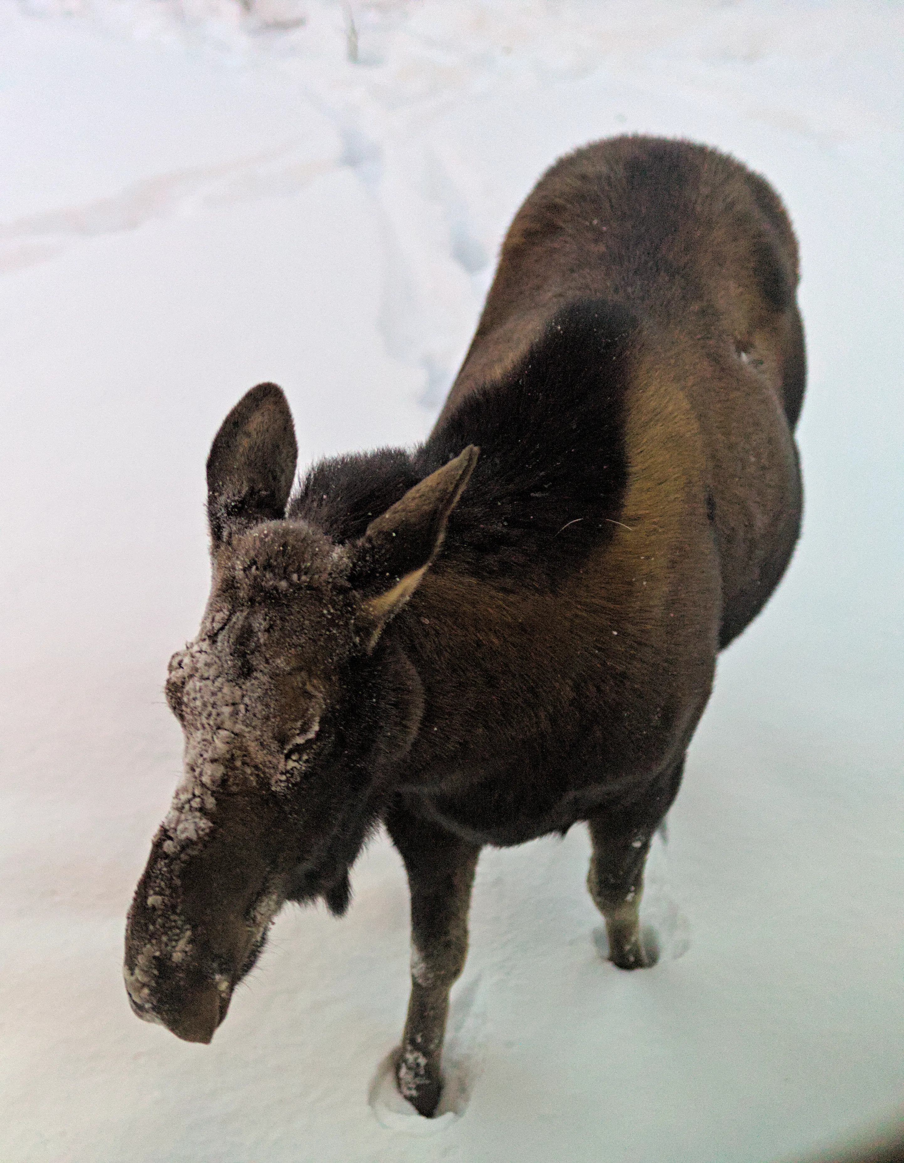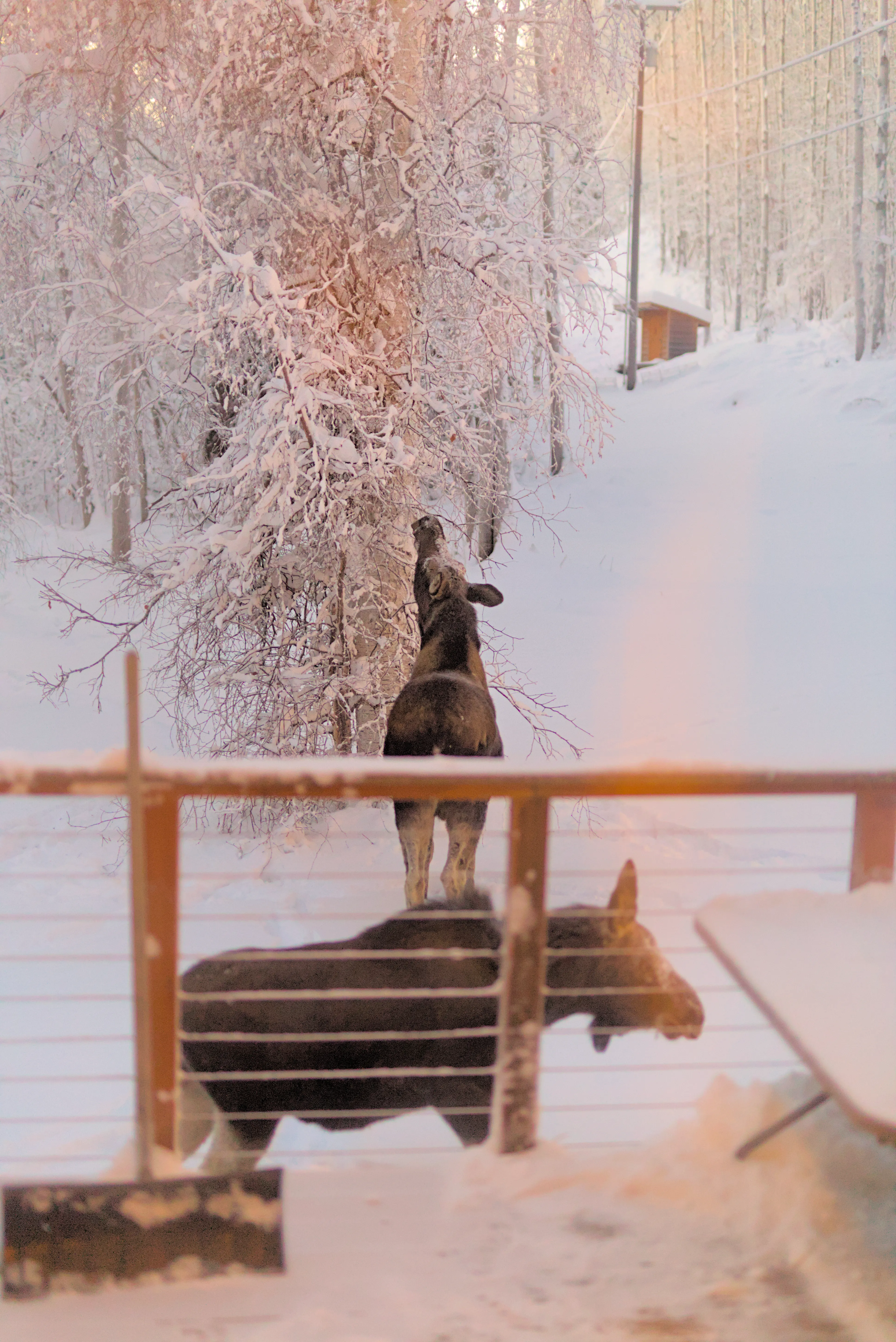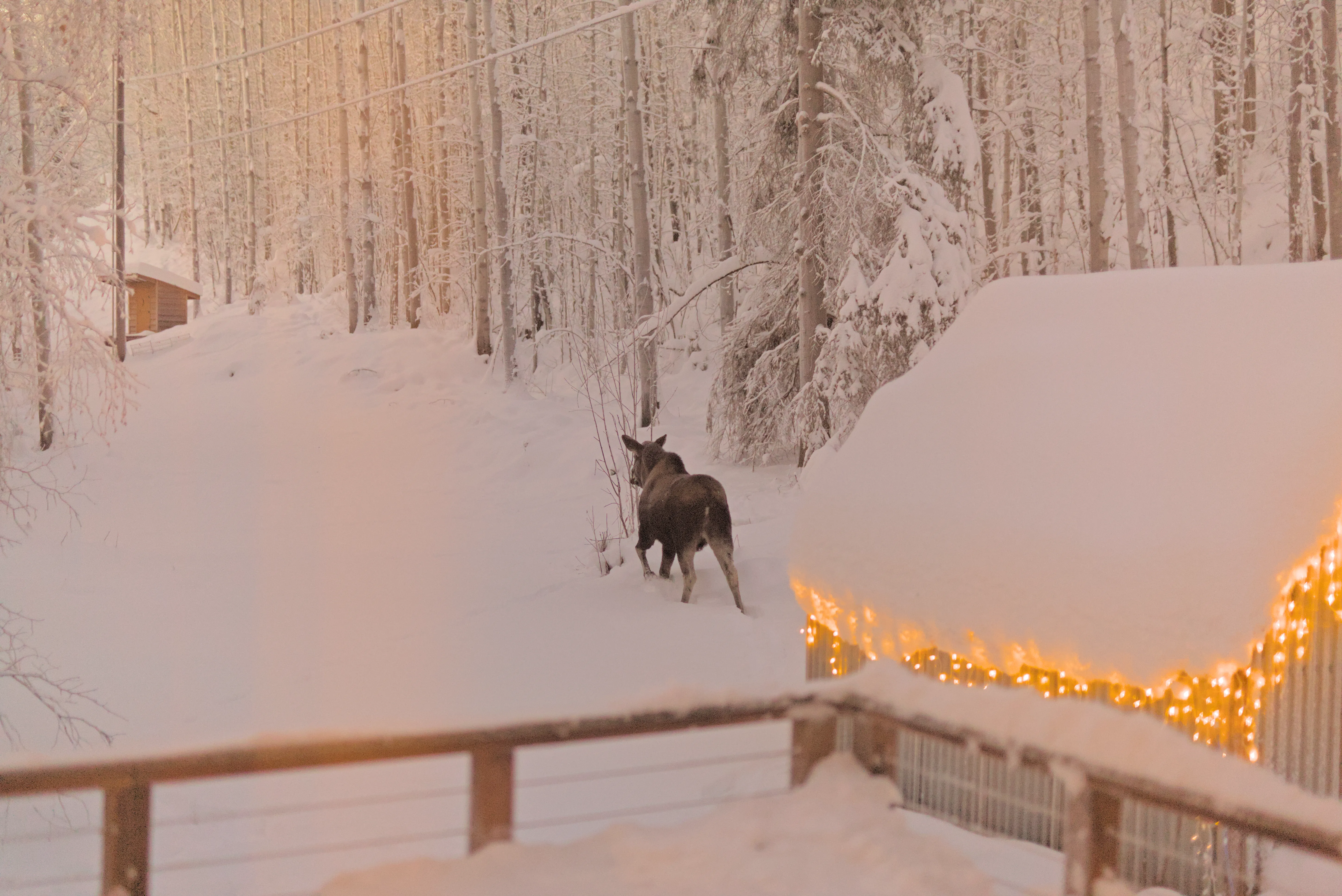 While visiting my parents in Fairbanks Alaska over the holidays, three moose came by our yard for some snacks. What followed was a classic Fairbanks scene.